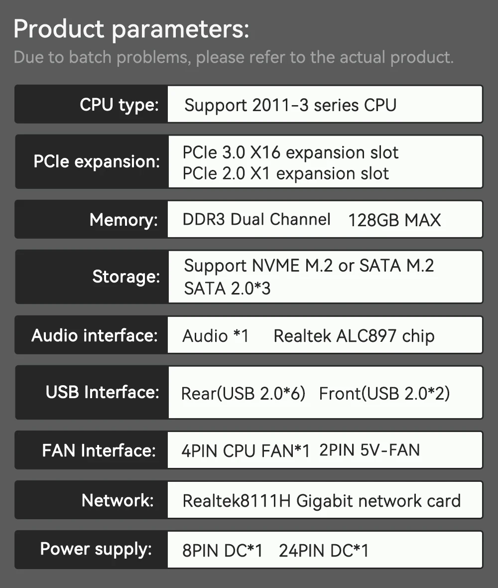 Please carefully check our bundle before purchasing. Choosing a motherboard will only have a PR8-H motherboard. Selecting motherboard+CPU+RAM will send PR8-H motherboard+E5 2673 V3 processor+DDR3 16GB ECC 1333MHZ memory. Please check carefully.